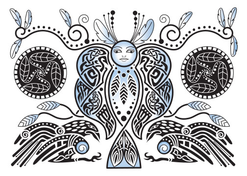 This artwork is a combo of an illustration from the Book of Kells and a rune for protection. I created it in Adobe Illustrator. It depicts two creatures fighting, not sure but I see a bear and a dog. The rune (looks like a P) is the rune Wunjo, meaning joy & light, peace & harmony. It is pronounced Unyo or Wunya. I interpret this for myself as, despite all the travails of the past, things will finally align. It represents clarity and understanding of your inner self and where you want to be in your life.